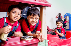 We put the "Child First" and strive consistently to maintain a fool proof and safe environment, giving them an avenue plus direction to discover their true potential optimally. Here, at Alphabet Campus, we believe in making a child "WORLD READY". Thus we follow the International Pre School curriculum consisting of 56 thematic units comprising of play, enquiry and objective based learning.